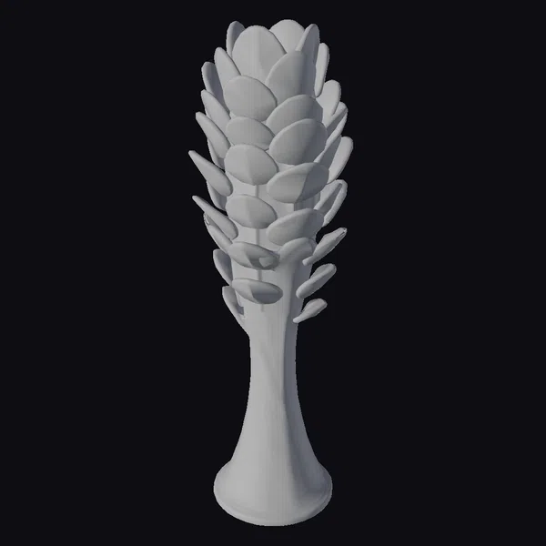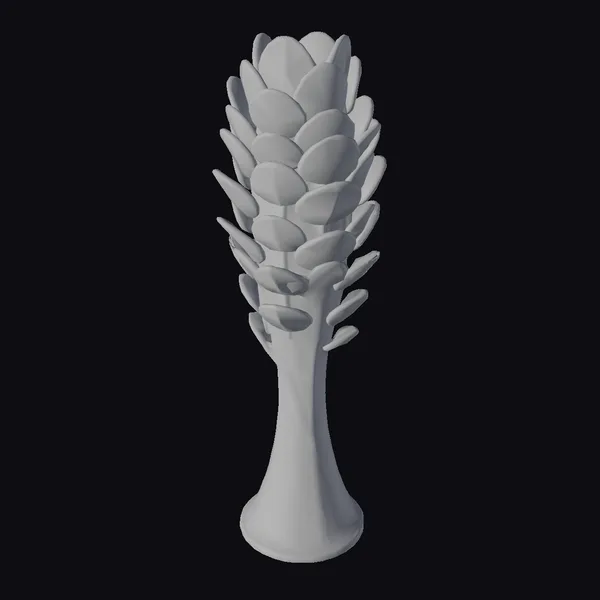 Perched on a sleek black base, the tower’s trunk elegantly flares out at the bottom, supporting a mesmerizing array of leaf-like panels that resemble a blooming flower. Crafted from a blend of materials, the trunk’s smooth, white ceramic surface contrasts beautifully with the delicate, transparent glass leaves, which are intricately arranged to maximize air purification efficiency. Soft, green lighting emanates from within, casting a calming ambiance and highlighting the tower’s unique, stylized design. This model is perfect for projects focused on sustainable urban planning, futuristic architecture, and innovative design. Its detailed structure and captivating glow make it an excellent choice for 3D rendering, animation, and architectural visualization projects.