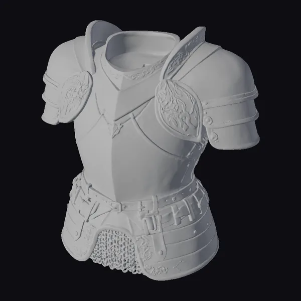 This stunning piece of armor boasts a silver base with a subtle sheen, evoking the feel of polished metal. Golden accents dance across its surface, from the delicate etchings on the breastplate to the ornate shoulder guards. A brown leather belt, adorned with gold buckles, adds a practical touch to this otherwise regal attire. The armor’s design is a testament to medieval craftsmanship, with each piece carefully articulated to provide protection without hindering movement. The gold accents catch the light, suggesting a piece that is both battle-ready and ceremonial. Whether for a game, animation, or design project, this armor model brings a touch of historical grandeur and fantasy flair.