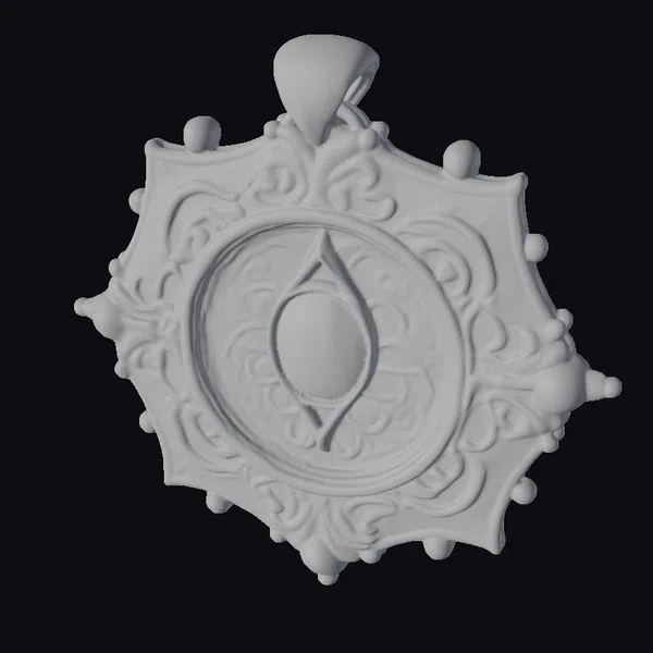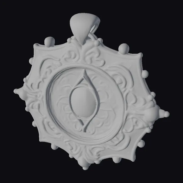 Rendered in exquisite detail, this golden pendant boasts an amber stone set within an intricately designed frame. The pendant’s surface is adorned with swirling patterns that evoke a sense of luxury and sophistication. The amber stone, with its warm, golden hue, seems to glow from within, adding a touch of natural beauty to the piece. The pendant’s edges are finished with small, rounded protrusions, adding a subtle texture to the overall design. Ideal for use in jewelry design, fashion projects, or as a decorative element in 3D environments, this model is sure to add a touch of elegance to any scene. Its high level of detail makes it perfect for close-up shots or as a focal point in a larger composition.
