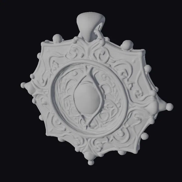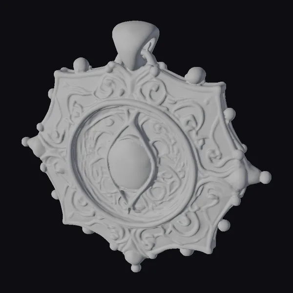 Gaze upon the radiant golden pendant, adorned with an oval amber gemstone that seems to glow from within. The pendant’s surface is a masterclass in intricate design, with swirling filigree patterns that dance around the central stone. The golden framework is punctuated by small spheres, adding a touch of whimsy to the overall piece. As light catches the pendant, the amber gemstone shimmers, drawing the eye to its warm, honey-like depths. This stunning piece of jewelry is perfect for games, animation, or 3D printing, offering a level of detail and realism that’s sure to impress. Designers and artists will appreciate the versatility of this model, which can be used in a variety of contexts, from fashion design to architectural visualization.