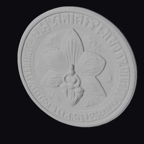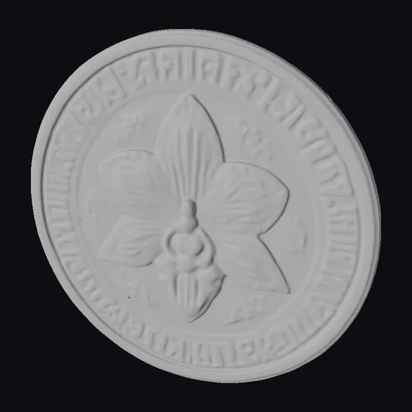 The golden Pabulhon Award Medallion boasts a meticulously crafted design, featuring a raised orchid at its center. The flower’s delicate petals and detailed texture are accentuated by the subtle shine of the gold material. The medallion’s edge is inscribed with the award’s name in bold, curved letters, while the lower edge bears additional text in a smaller, yet still elegant font. The overall design conveys a sense of prestige and achievement. Ideal for use in games, animations, or designs requiring a touch of luxury and excellence.