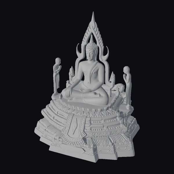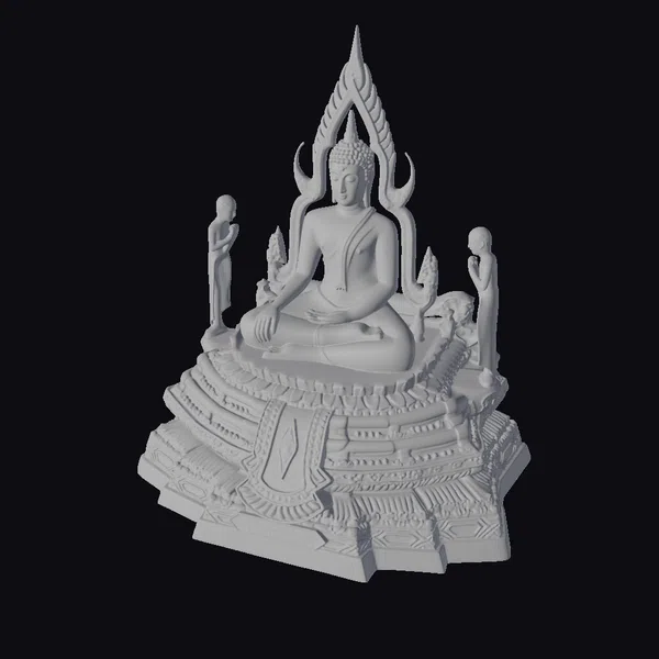 Crafted with meticulous attention to detail, this golden Buddha statue showcases a serene figure sitting cross-legged on a throne, flanked by two smaller attendants. The statue’s golden hue is complemented by a red and gold throne, adorned with intricate carvings and ornate details. The base features a series of colorful accents, including red and blue stones, adding depth and visual interest. The statue’s proportions are accurate, with a focus on capturing the peaceful expression of the Buddha. The model is perfect for use in games, 3D printing, VR/AR experiences, animation, and design projects, offering a unique and captivating visual element. Whether used to create a serene atmosphere or as a focal point, this golden Buddha statue is sure to impress.