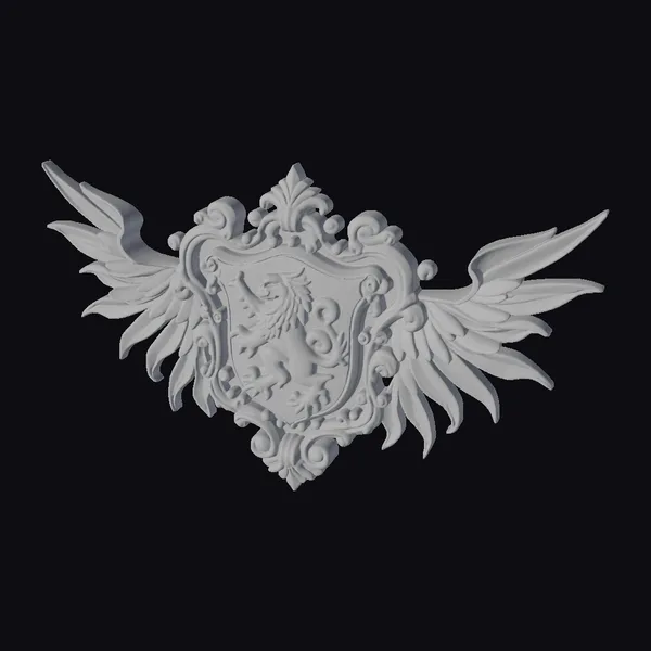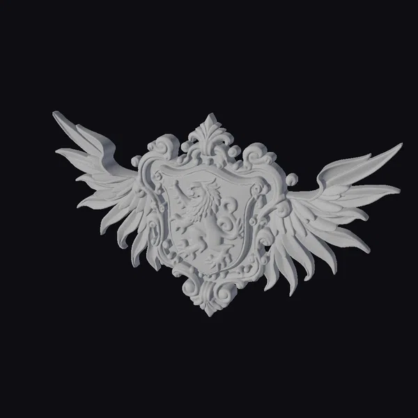 Positioned against a crisp white backdrop, the Golden Crest Emblem takes center stage, its ornate details and textures on full display. The shield’s embossed lion appears to leap from the surface, as if frozen in a moment of dynamic movement. The wings, a kaleidoscope of red and gold hues, seem to flutter gently, imbuing the piece with a sense of life. Crafted with meticulous attention to detail, this stylized model boasts a level of craftsmanship that would make it a stunning addition to any game, animation, or design project. Whether used to add a touch of luxury to a virtual environment or as a prop in a 3D modeling project, this emblem is sure to impress. Its versatility also makes it suitable for use in print materials, VR/AR experiences, or as a decorative element in architectural visualizations.