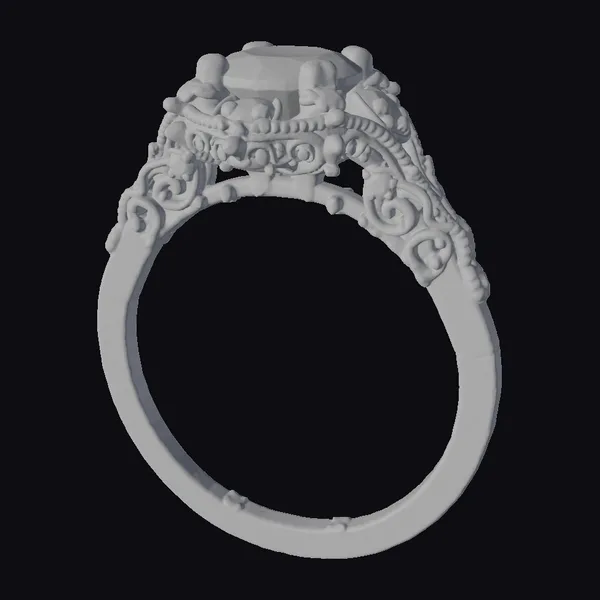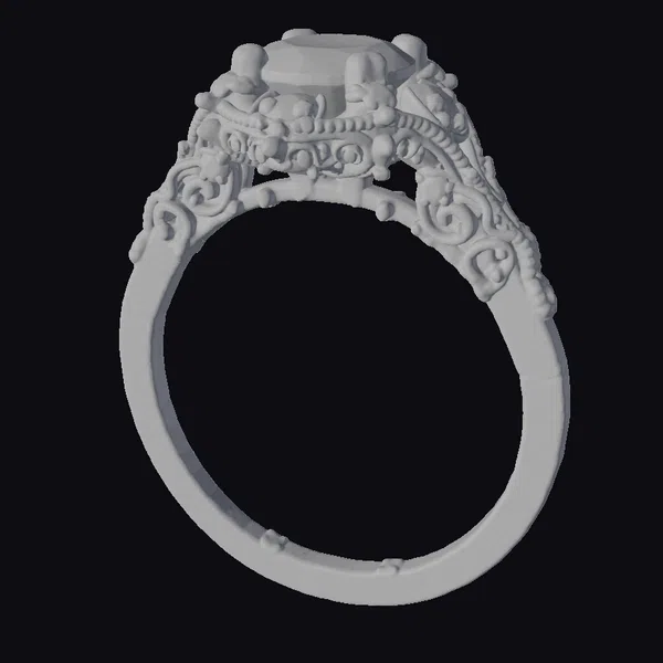 Positioned in a majestic pose, the golden ring showcases its ornate details and a large, sparkling diamond. The band’s intricate filigree work and the diamond’s clarity are highlighted by subtle lighting, emphasizing the ring’s luxurious appeal. The model’s high level of detail makes it perfect for use in high-end jewelry advertisements, fashion magazines, or as a centerpiece in virtual reality experiences. Designers and artists can leverage this model to create stunning visuals for marketing campaigns or to inspire new jewelry collections.