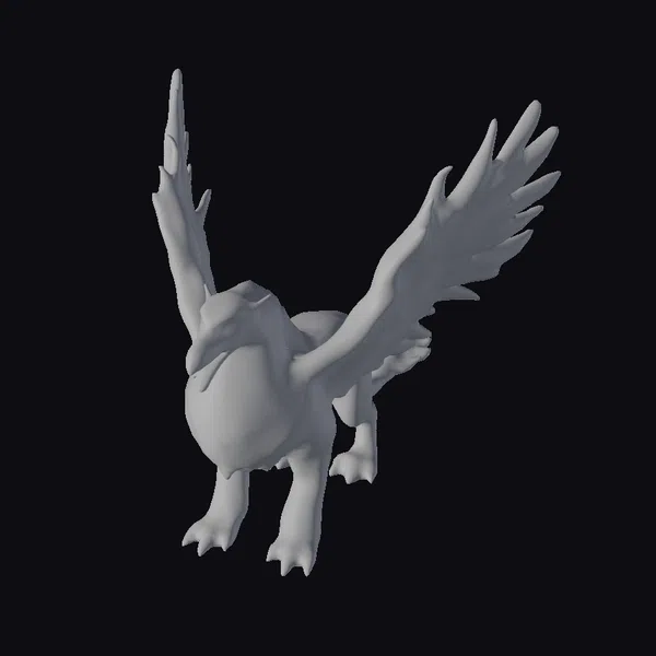 Perched on the edge of flight, this stunning golden griffin appears to be about to take to the skies at any moment. Its wings, a mesmerizing blend of white and gold feathers, are spread wide, showcasing their impressive span. The griffin’s body, a mix of lion-like strength and eagle-like agility, is rendered in exquisite detail, from the texture of its feathers to the sharpness of its claws. Its eyes gleam with a fierce inner light, adding to the overall sense of power and majesty. This model would be perfect for use in games, animation, or 3D printing, where a touch of fantasy and wonder is needed.