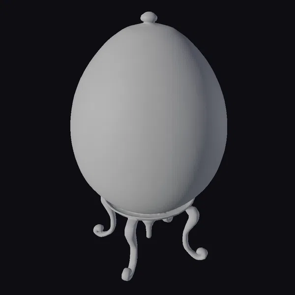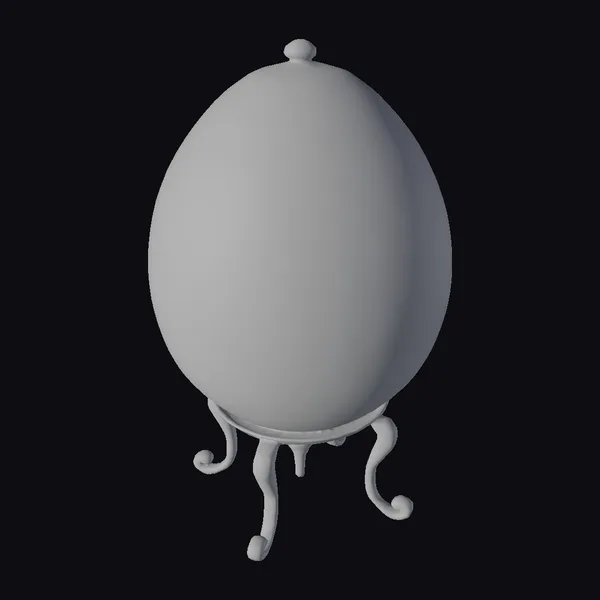 The golden egg, a masterpiece of luxury and craftsmanship, boasts an oval shape with a delicate, raised pattern of leaves and branches that dance across its surface. A band of clear jewels encircles the middle, adding a touch of brilliance. The egg sits on a sturdy, golden stand with three elegantly curved legs, each ending in a decorative curl. This 3D model captures every detail, from the subtle texture of the metal to the sparkle of the jewels, making it perfect for high-end projects, such as game development, 3D printing, virtual reality experiences, or architectural visualizations.