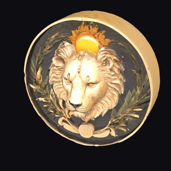 This stunning 3D model captures the intricate details of a golden lion medallion, showcasing the majestic animal’s head in high relief. The lion’s mane and facial features are meticulously rendered, with a subtle texture that suggests the warmth of gold. The medallion itself is surrounded by a laurel wreath, adding a touch of classic elegance. A golden sun rises behind the lion’s head, casting a sense of drama and power. The model is perfect for use in games, animation, or 3D printing, where a touch of luxury and sophistication is required. The level of detail and realism makes it an excellent choice for designers and artists seeking to add a regal element to their projects.