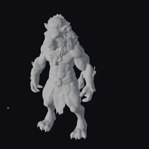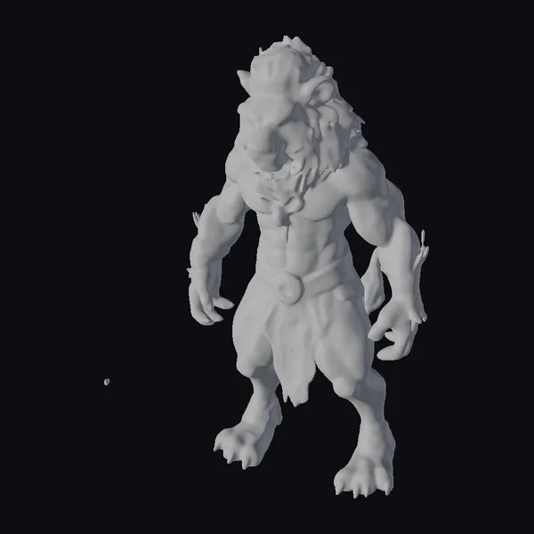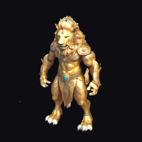 Standing proudly with a commanding presence, the Golden Lion Warrior boasts a muscular humanoid form covered in a thick, shaggy mane that flows like liquid gold. The creature’s golden fur is accentuated by turquoise markings on its arms, legs, and waist, adding an air of mystique. Its sharp claws gleam with a subtle sheen, while its fierce expression seems to challenge all who dare approach. The warrior’s pose, with feet shoulder-width apart and arms relaxed, conveys a sense of readiness and strength. This 3D model is perfect for use in games, animation, VR/AR experiences, and design projects where a mythical, powerful creature is needed.