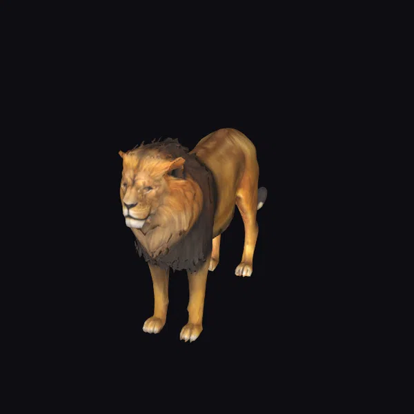 In a powerful stance, the lion’s muscular physique is evident, with each strand of its dark brown mane carefully textured to perfection. The golden tones of its fur gradate smoothly, capturing the play of light on its body. The eyes, though calm, seem to hold a thousand stories of the savannah. This model is perfect for projects requiring a realistic and awe-inspiring depiction of a lion, suitable for animations, games, and virtual reality experiences. Its detailed features make it an excellent choice for zoological studies, wildlife documentaries, or any creative endeavor aiming to capture the essence of nature’s majesty.