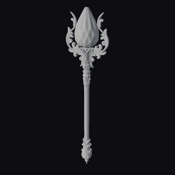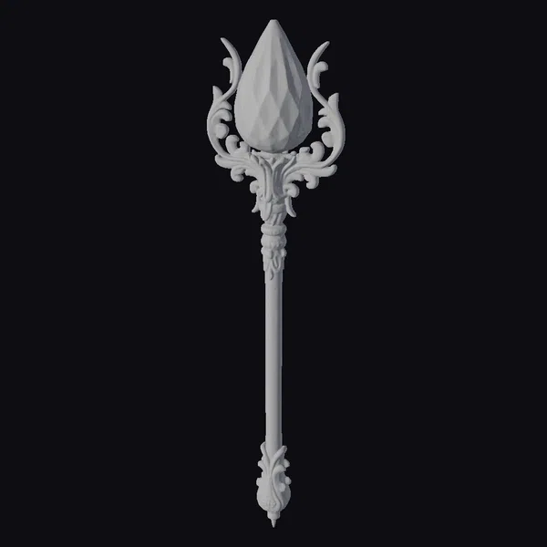 Perched atop the wand is a vibrant red teardrop gemstone, radiating a warm glow that seems to emanate from within. The gemstone is encircled by an ornate gold filigree, shaped like delicate leaves and vines that twist and turn in a mesmerizing dance. The wand’s slender handle is adorned with a series of intricate, swirling patterns that evoke a sense of ancient mysticism. As a 3D model, this golden magical artifact is perfect for use in games, animation, or 3D printing, offering a level of detail and realism that’s sure to captivate audiences. Designers and artists can use this model to add a touch of luxury and fantasy to their work, whether it’s for a movie prop, a video game asset, or a stunning piece of 3D art.