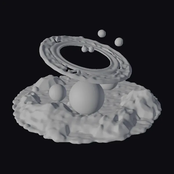 In a stunning visual feast, this 3D model captures a Christmas conjunction between planets and stars, rendered in a warm, golden hue. The centerpiece is a large, textured ring, reminiscent of Saturn’s, but with a more rugged, molten appearance. It’s surrounded by several planets, each with unique textures and sizes, some featuring banded patterns similar to Jupiter’s. A few small moons are scattered around the scene, adding to the sense of depth and scale. The planets and ring are positioned on a base that looks like a cross between molten lava and a nebula, adding a dynamic, cosmic background to the scene. The entire setup is bathed in a warm, golden light, giving it a festive feel that’s perfect for a Christmas-themed project. This model would be perfect for use in animations, games, VR/AR experiences, or as a design element in projects requiring a cosmic, celebratory atmosphere.
