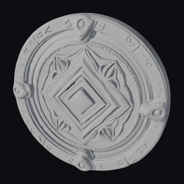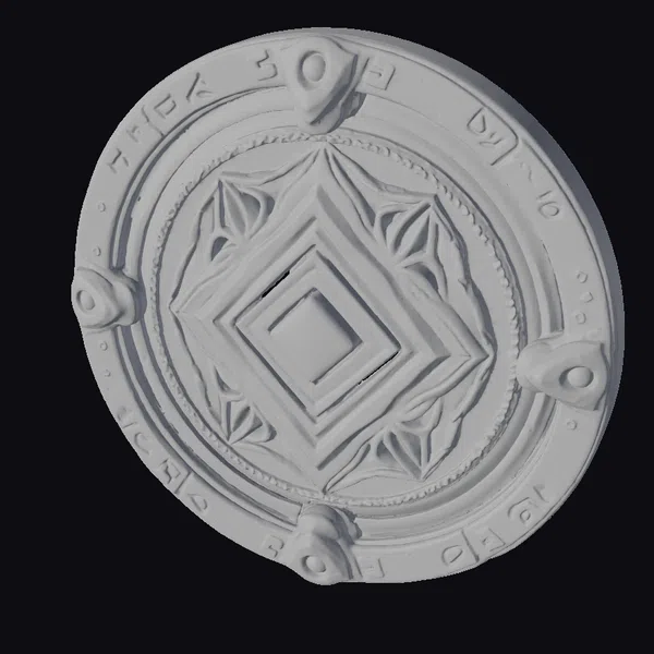 The Golden Red Reward Token presents itself with a striking red and gold color scheme, meticulously detailed with symmetrical patterns that suggest a deep, mystical significance. At its center, a diamond-shaped motif is encased within concentric squares, surrounded by a series of leaf-like protrusions that add to its ancient, mysterious allure. The token’s edge is adorned with what appears to be an ancient script, further enhancing its enigmatic presence. Ideal for use in video games, virtual reality experiences, or as a decorative piece, this model can serve as a symbol of achievement, a key to unlocking new levels, or a collectible item. Its high level of detail makes it suitable for close-up shots in animations or as a detailed prop in game development.