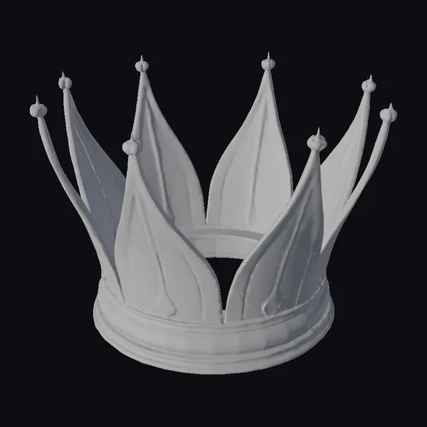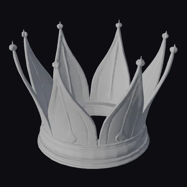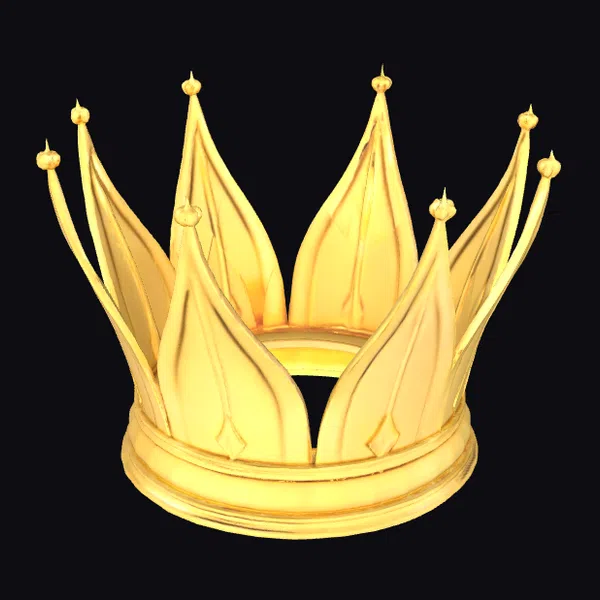 Positioned proudly on a plain background, the golden crown takes center stage, its intricate details on full display. The crown’s base is sturdy and wide, providing a solid foundation for its soaring points, each tipped with a small golden orb. Light dances across its surface, highlighting the delicate textures and curves that make this piece truly exceptional. Whether for a game, 3D print, VR/AR experience, animation, or design project, this crown model brings a touch of royalty and grandeur. Its realistic style ensures it fits seamlessly into any high-end setting.
