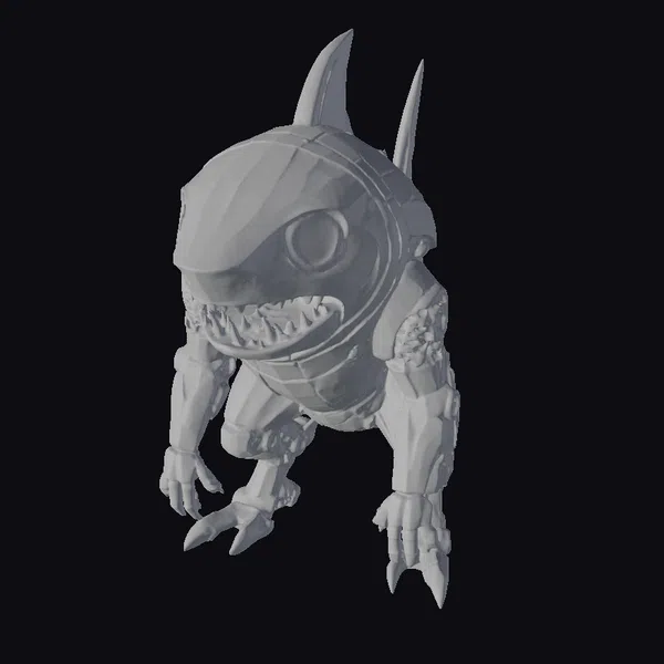 Detailed with precision, this golden shark robot stands poised, its body a marvel of mechanical design. The glowing blue eyes seem to pierce through the darkness, while sharp teeth and fins hint at its predatory nature. The metallic surface shimmers with a subtle sheen, inviting the viewer to explore every nook and cranny. Ideal for use in games, animations, or 3D printing, this model brings a touch of futuristic fantasy to any project. Its unique blend of shark and robot features makes it a standout addition to any sci-fi or fantasy setting.
