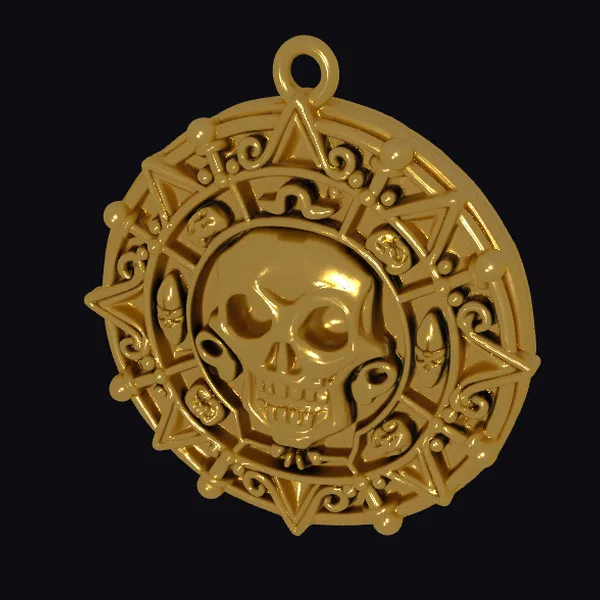 The golden skull emblem presents a striking visual with its central skull motif, rendered in high detail and encircled by a series of sharp, geometric shapes that alternate with ornate scrollwork. The medallion’s gold color shines brightly, highlighting the textures and adding to its luxurious appeal. The emblem’s design is both symbolic and stylish, making it suitable for various applications, including jewelry design, game assets, 3D printing, and animation projects. Its unique blend of dark and opulent elements can add a touch of edginess to any design.
