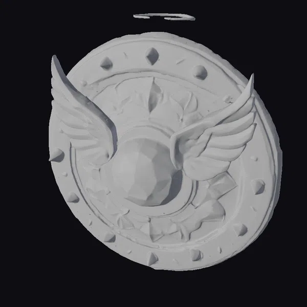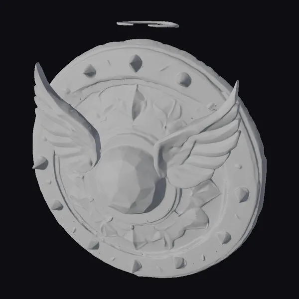 In exquisite detail, this golden winged starburst emblem showcases a mesmerizing interplay of light and texture. The central sphere pulsates with a warm, golden light, surrounded by delicate wings that appear poised for flight. The emblem’s concentric rings are intricately designed, with a subtle marble texture that adds depth and visual interest. As the eye moves outward, the rings give way to a halo of smaller, shimmering stones that add a touch of magic to the overall design. This emblem is perfect for use in games, 3D printing, VR/AR experiences, animation, and design projects, where a touch of fantasy and luxury is desired.