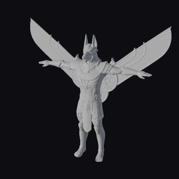 In a majestic pose, the golden winged warrior stretches its magnificent wings, showcasing a blend of human and avian features. The armor, a detailed mesh of gold and dark metal, covers the warrior’s body, accentuating its muscular physique. The wings, feathered and strong, are spread wide, suggesting the moment just before takeoff. This model is perfect for projects requiring a mythical or heroic character, such as animations, games, or architectural visualizations. Its detailed design and realistic textures make it an excellent choice for high-quality productions.