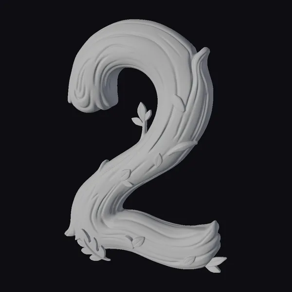 Crafted with meticulous attention to detail, this stylized number two is designed to resemble a twisted piece of wood, its golden hue radiating warmth and elegance. The surface is embellished with small green leaves, adding a touch of nature and vitality. The glossy finish enhances the wood grain texture, giving it a lifelike appearance. Ideal for use in various creative projects, such as game development, animation, and design, this model can add a unique and eye-catching element. Its high-quality design ensures it will stand out in any 3D environment, from games to virtual reality experiences.