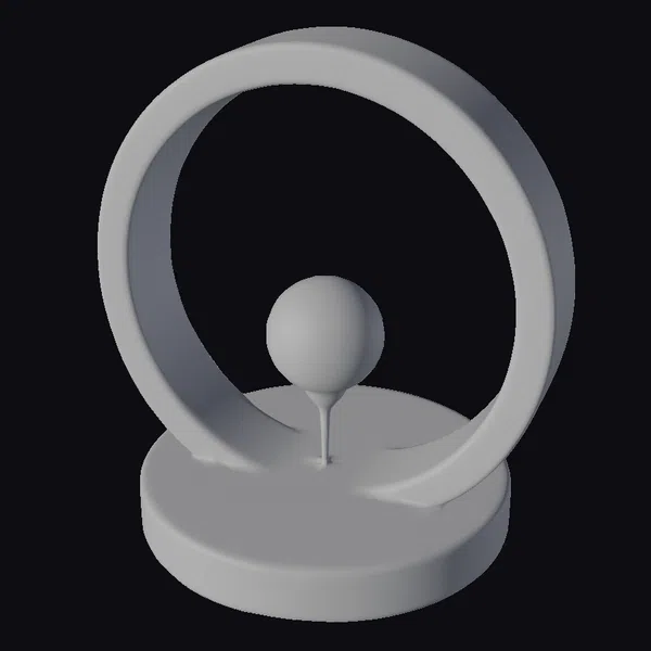 Perched on a small tee, a clear golf ball takes center stage within a stunning, arch-shaped display. The golf ball’s dimpled texture catches the light, adding depth to the overall design. The display’s smooth, gray arch curves gracefully around the ball, supported by a sturdy base that ensures stability. The modern aesthetic of this piece makes it an excellent choice for decorating a sports room, office, or man cave. Its unique design also makes it an ideal prop for 3D rendering projects, animations, or architectural visualizations. Whether you’re a golf enthusiast or just appreciate sleek design, this display is sure to impress.