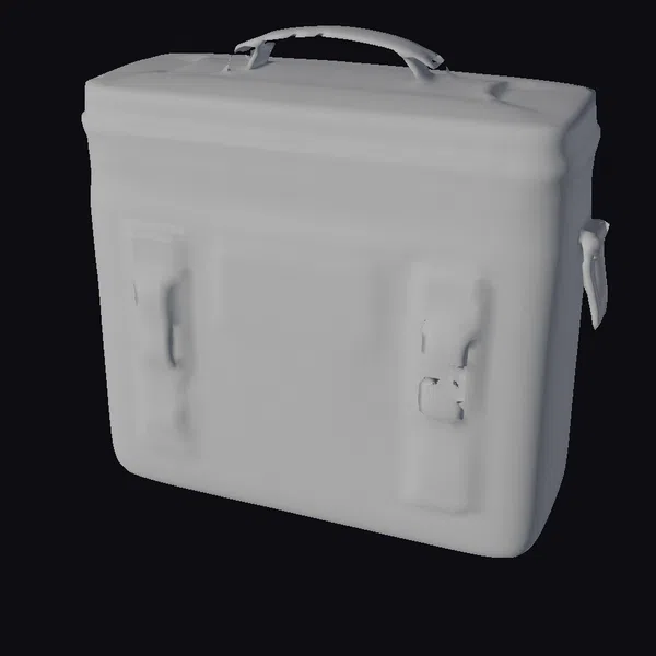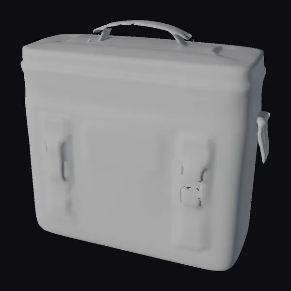 Detailed with precision, this gray cooler bag features a robust handle on top and two secure latches on the front, ensuring your items stay safely stored. The rectangular shape and flat top provide ample storage space, while the dark gray and light gray color scheme gives it a sleek, versatile look. Ideal for use in games, 3D printing, VR/AR experiences, animations, and designs where a realistic cooler bag is needed. The model’s textures and lighting effects highlight its durable material and portable design.