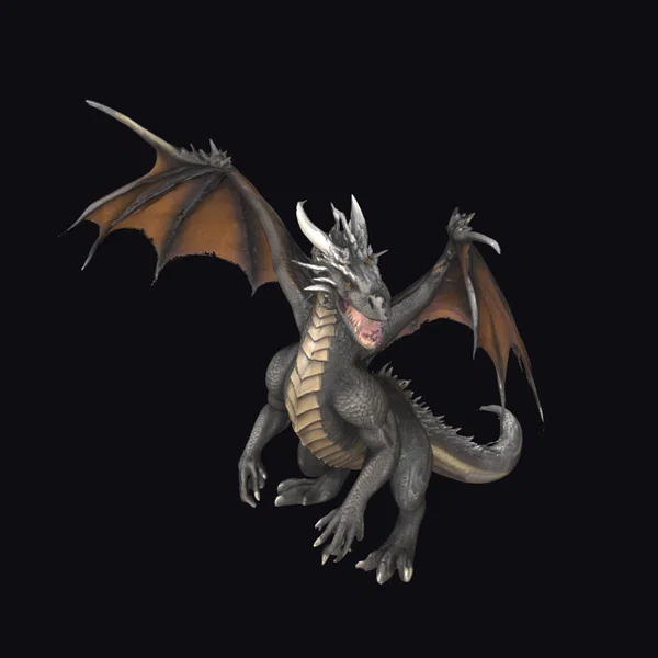 In a dynamic pose that captures its raw power and grace, this gray dragon model is meticulously detailed to bring forth the essence of mythical creatures. Its body, covered in dark scales, transitions to lighter shades on the belly and the inner parts of its wings, which are spread wide, showcasing its readiness to take flight. The dragon’s head, with its sharp horns and fierce expression, commands respect. The texture of its scales, the structure of its wings, and the intensity of its gaze are all crafted to inspire awe. This model is perfect for projects that require a mythical creature with a strong presence, such as animations, games, or architectural visualizations that aim to transport viewers to fantastical worlds.