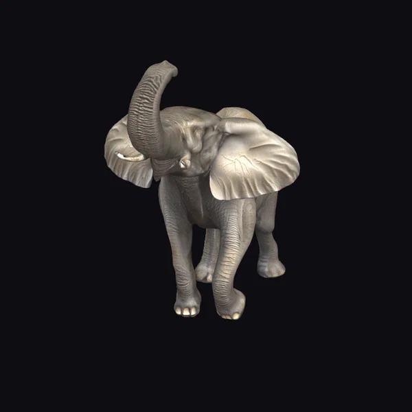 The elephant stands proudly, its wrinkled gray skin telling the story of years gone by. The trunk curls upwards in a majestic arc, while large ears spread wide, one slightly overlapping the other, showcasing delicate textures that mimic the natural folds and creases found on an elephant’s body. The model’s realistic proportions and attention to detail make it suitable for various applications, including games, 3D printing, virtual reality, and animation. The elephant’s gentle demeanor and lifelike appearance evoke a sense of calm, making it an excellent choice for projects requiring a realistic yet approachable animal character.