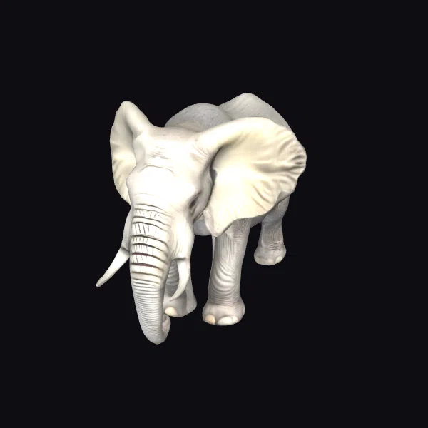 Positioned in a neutral stance, this gray elephant model showcases an impressive level of detail, from the texture of its wrinkled skin to the natural folds of its large ears. The model’s realistic proportions and gentle facial expression capture the essence of its wild nature. Its tusks and trunk are accurately represented, adding to the model’s authenticity. This model is perfect for projects requiring a realistic depiction of an elephant, suitable for use in wildlife documentaries, educational materials, games, and animations. The model’s high level of detail makes it an excellent choice for close-up shots or scenes where the elephant is a focal point.