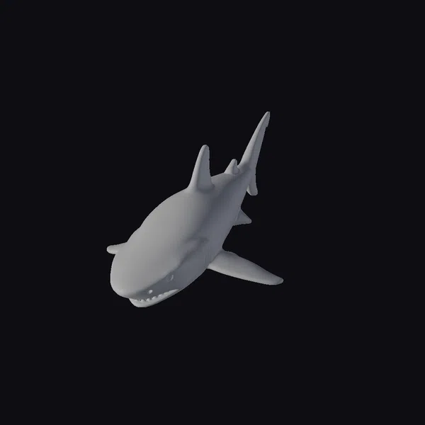 Positioned in a dynamic pose, this gray shark model showcases its powerful tail and fins, meticulously textured to mimic the real thing. The model’s surface is smooth and slightly shiny, suggesting the sleekness of a shark’s skin. Its eyes are subtly detailed, adding to the realism. The mouth is open, revealing rows of sharp teeth, giving a glimpse into the ferocity of this marine predator. This model is perfect for use in educational projects, marine life simulations, or as a decorative piece for oceanography enthusiasts. Its realistic appearance makes it an excellent choice for 3D printing, animation projects, or virtual reality experiences.