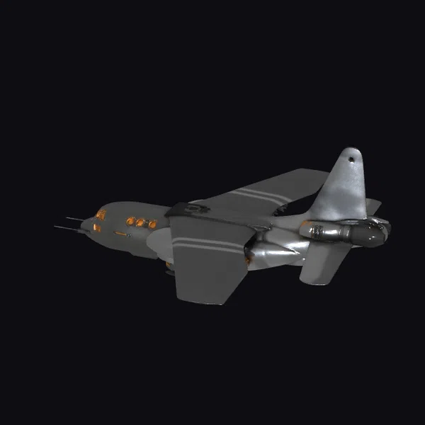 In a dynamic pose, the gray stealth bomber showcases its sleek, aerodynamic design, complete with metallic surfaces and orange accents. The aircraft’s futuristic look is accentuated by its sharp angles and pointed nose. With its detailed features and realistic proportions, this model is perfect for use in games, 3D printing, VR/AR experiences, animation, and design projects. The stealth bomber’s menacing presence is sure to add a touch of realism to any project.
