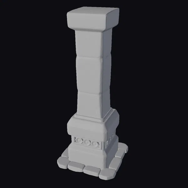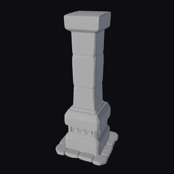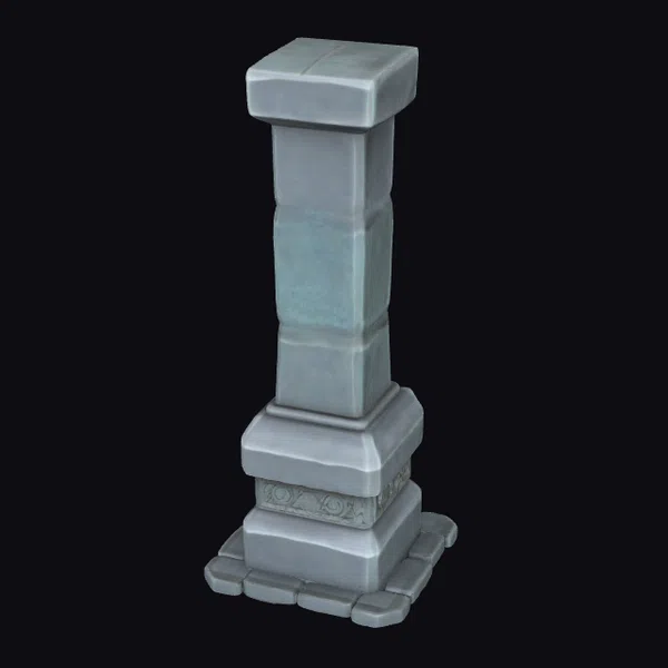 Standing tall with its square base and capital, this gray stone pillar showcases a meticulously crafted design. The pillar’s body features a subtle gradient of gray and blue hues, suggesting a weathered patina. Ornate details adorn the lower section, adding a layer of sophistication. The pillar’s proportions are balanced, making it a versatile asset for various applications, from architectural visualizations to game environments. Its realistic appearance makes it suitable for projects requiring an authentic, historical feel, such as animations, 3D printing, or virtual reality experiences.