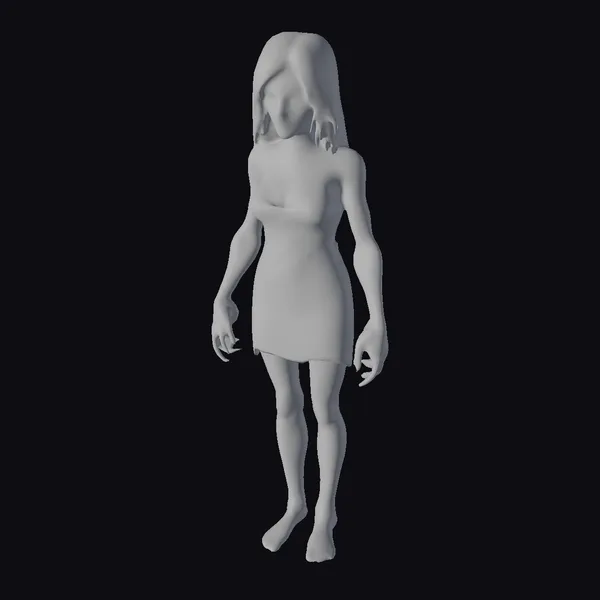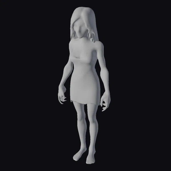 Standing tall with an unsettling presence, this gray zombie woman is meticulously detailed, from the tattered remnants of her dress to the dark, sunken eyes that seem to pierce through the darkness. Her long hair cascades down her back, adding to the overall macabre appearance. The model’s pose, with arms outstretched and fingers morphed into sharp claws, captures a moment of haunting stillness. Ideal for projects delving into the horror genre, this model can bring to life scenes of apocalyptic despair, haunted realms, or eerie, supernatural encounters in games, animations, or VR/AR experiences.