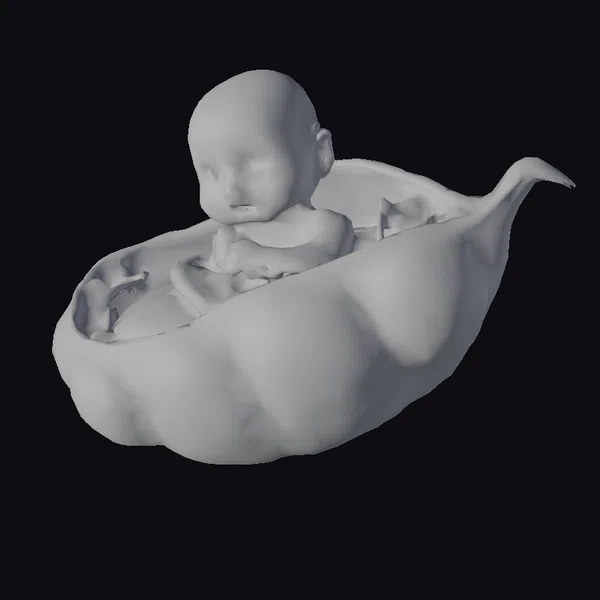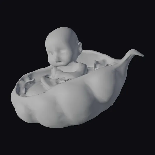 In a stunning display of photorealism, a small, green-tinged baby slowly hatches from a large soybean pod, reminiscent of edamame. The baby’s features are meticulously detailed, with soft, rounded facial structures and delicate skin tones. The soybean pod, with its vibrant green color and textured surface, appears almost lifelike. The scene is set against a clean, white background, allowing the viewer’s focus to remain on the baby and the pod. This model is perfect for use in various applications, including games, 3D printing, virtual reality (VR) and augmented reality (AR) experiences, animations, and design projects. Its high level of detail and realistic appearance make it an excellent choice for projects requiring a lifelike representation.
