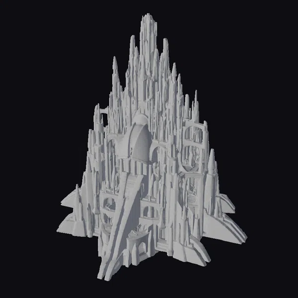 This towering green crystal cityscape is a marvel of fantastical architecture, boasting a complex geometry that showcases a multitude of interconnected structures. The model’s surface is adorned with a myriad of sharp, jagged spires that reach towards the sky, giving it an otherworldly appearance. The predominantly green hue is beautifully complemented by blue accents that add depth and a sense of luminescence. The cityscape’s design suggests a blend of organic and synthetic elements, making it a perfect fit for sci-fi and fantasy narratives. Its detailed texture and lighting make it an excellent choice for 3D printing, game development, virtual reality experiences, and animation projects.