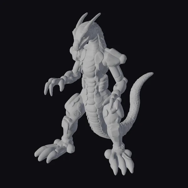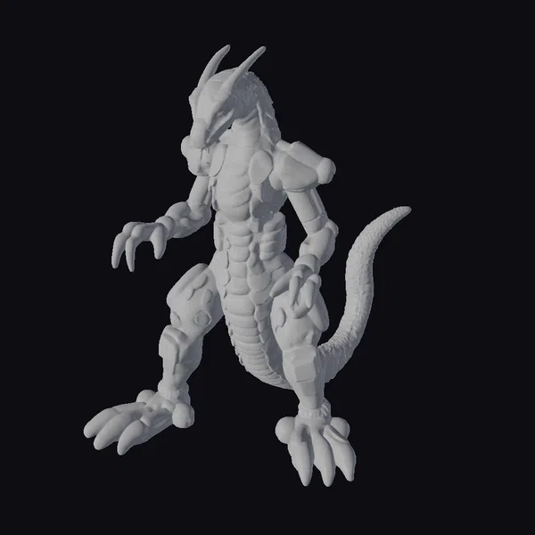 Standing proudly with its legs apart, this stylized dragon robot toy exudes a powerful presence. Its body is a mesmerizing blend of green scales and metallic armor, accented with bright yellow and orange details. The dragon’s head features two prominent horns, while its sharp claws and tail add to its fearsome appearance. The model’s intricate details, from the texture of its scales to the mechanical joints, make it perfect for use in games, 3D printing, VR/AR experiences, animation, and design projects. The combination of fantasy and technology embodied in this model offers endless creative possibilities.