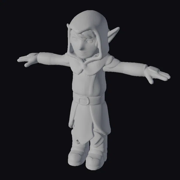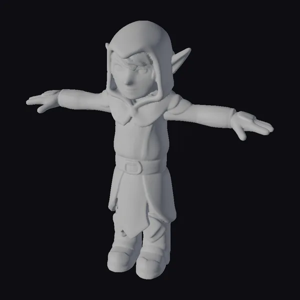 Standing confidently with feet shoulder-width apart, this green elf adventurer is poised for any quest. Their green hooded cloak and tunic are adorned with intricate, lighter green designs, complemented by a sturdy brown belt and gloves. The elf’s boots are knee-high and match the cloak in color, completing their adventurous ensemble. The model’s stylized features make it perfect for projects requiring a touch of fantasy and whimsy, such as animations, games, or fantasy-themed designs. The detailed textures and vibrant colors bring this character to life, making them an excellent addition to any creative project.