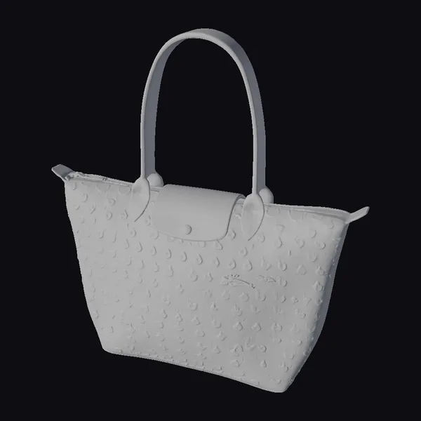 Positioned elegantly against a crisp white background, the green horseshoe tote bag showcases its distinctive shape, complete with sturdy handles and a secure flap closure. The bag’s surface features a repeating pattern of darker green spots, adding texture and visual interest. A small, sleek crocodile logo adorns the front, hinting at the brand’s heritage. The neon green zipper pulls provide a pop of color, drawing the eye to the bag’s functional details. Whether for everyday use or as a statement piece, this tote bag’s blend of form and function makes it a versatile accessory. Designers and artists can leverage this 3D model for various projects, from game environments and animations to architectural visualizations and fashion design presentations.
