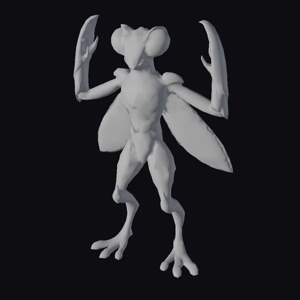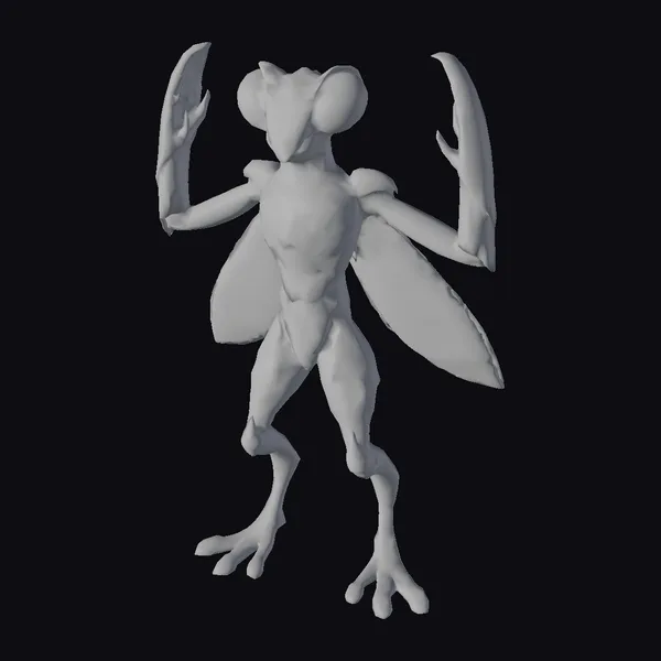 Detailed with precision, this green insectoid warrior model showcases a blend of organic and armored features. Its pose, with claws raised and wings spread, captures a moment of readiness or challenge. The texture and shading emphasize a metallic sheen on parts of its body, contrasting with softer, more natural areas. This model is perfect for projects requiring a unique, fantastical creature, such as animations, games, or virtual reality experiences. Its detailed anatomy and expressive stance offer a versatile base for various creative applications.