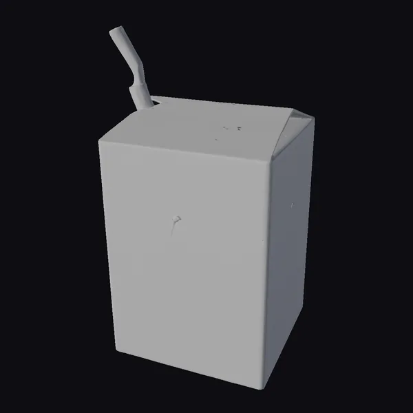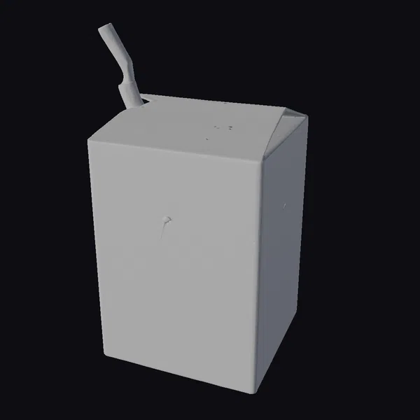 Positioned at a slight angle, the green juice box model showcases its detailed design. The box itself is primarily green with white accents, featuring a large red apple with a green leaf on its side. The apple’s shiny texture and the slight sheen on the box’s surface add a layer of realism. The top of the box has a small opening, likely for a straw, which is partially inserted. This model is perfect for designers and artists looking to add realistic packaging elements to their projects, whether for advertising, animation, or game development. The model’s proportions and textures are accurately captured, making it suitable for close-up shots or as part of a larger scene.