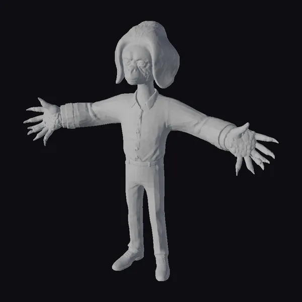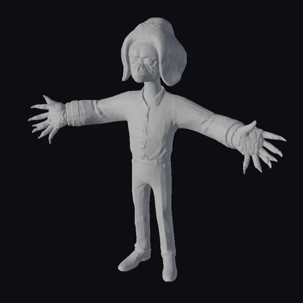 Standing with arms outstretched, this green monkey businessman is ready to take on the world. Its stylized features include a vibrant green face and hands, complemented by a stylish blonde hairdo and a crisp white shirt with gray pants and black shoes. The model’s texture and lighting create a visually appealing effect, making it suitable for various applications such as games, animation, and 3D printing. The monkey’s unique appearance and pose make it an excellent choice for projects requiring a dash of humor and personality.