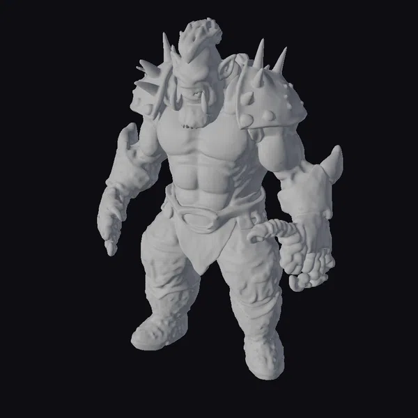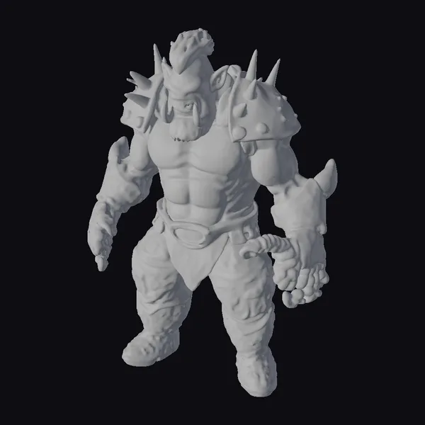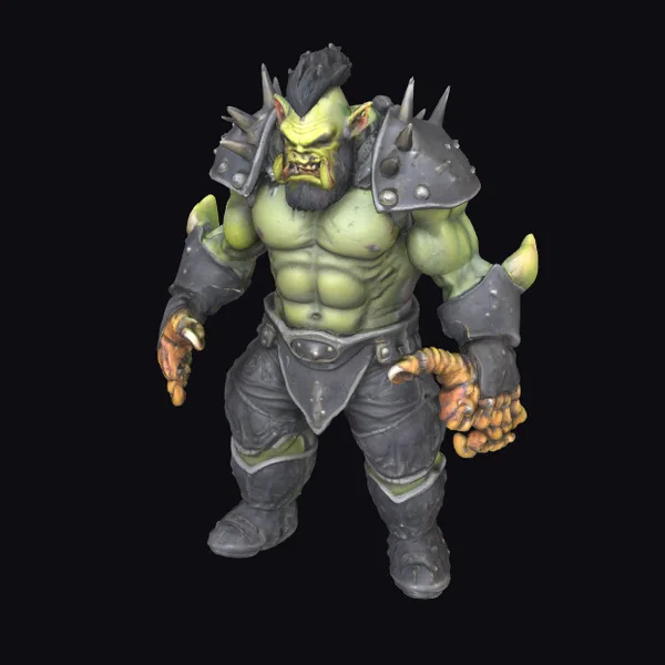 Standing with a wide stance, this imposing figure showcases a detailed physique, from the sharp spikes on his armor to the texture of his green skin. The character’s facial features are accentuated by a thick beard and a distinctive mohawk, contributing to his intimidating appearance. His hands, clad in armor with sharp claws, are clenched, as if ready to pounce into action. The model is highly detailed, making it suitable for various applications such as game development, 3D printing, virtual reality experiences, and animation. Its stylized yet realistic portrayal captures the essence of a fantasy football player, perfect for projects requiring a blend of sports and fantasy elements.