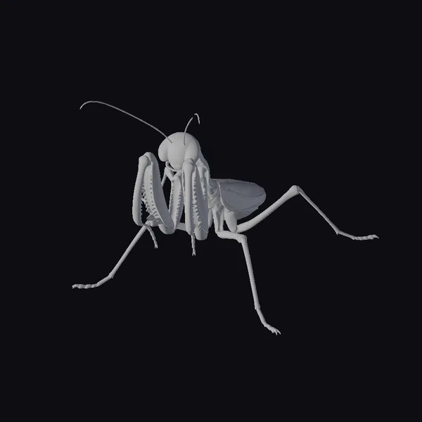 In a poised stance, this green praying mantis model showcases its elongated body, with a mesmerizing green hue that gradates in intensity across its form. Its large, spiked forelegs are clasped together, revealing rows of sharp, pointed teeth-like structures. The model’s long, slender legs are spread wide, giving it a sense of dynamic tension, as if it’s about to pounce. The texture of its body, with subtle hints of shadows and light reflections, adds to the realism. This model is perfect for use in games, animations, or 3D printing projects where a detailed, realistic insect is needed.