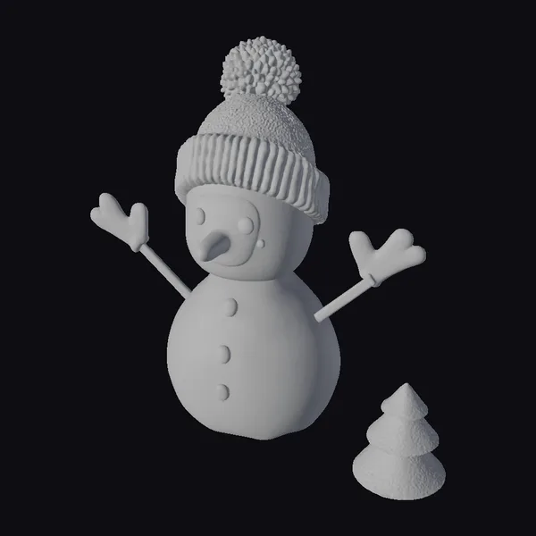 This delightful green snowman stands with outstretched arms, inviting you into a whimsical winter wonderland. Its body and hat are adorned with soft, glowing lights that add a warm, cozy ambiance. A fuzzy green hat topped with a bright yellow pom-pom and matching gloves complete its charming appearance. The snowman’s body is crafted from what appears to be a textured, possibly furry material, giving it a unique, stylized look. A small, similarly styled tree sits beside the snowman, enhancing the diorama’s charm. The model’s clean, game-ready topology and high-quality PBR materials ensure it is both visually appealing and versatile for various applications, such as game development, animation, and 3D printing. The subtle wear and warm emissive lights contribute to its cozy, inviting atmosphere.