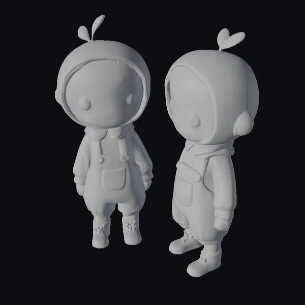 Gazing at these twin figures, their rounded faces and large, expressive eyes immediately capture attention. The detailed textures of their green overalls, complemented by small sprouts on their headgear, showcase a delightful blend of simplicity and intricate design. Positioned in dynamic stances, these models are versatile enough for various applications, including game development, animation projects, virtual reality experiences, and even 3D printing. Their stylized appearance ensures they fit seamlessly into cartoon or fantasy settings, making them ideal for creators looking to infuse their work with a sense of fun and playfulness. The models’ proportions are well-balanced, ensuring they can be easily integrated into different environments.