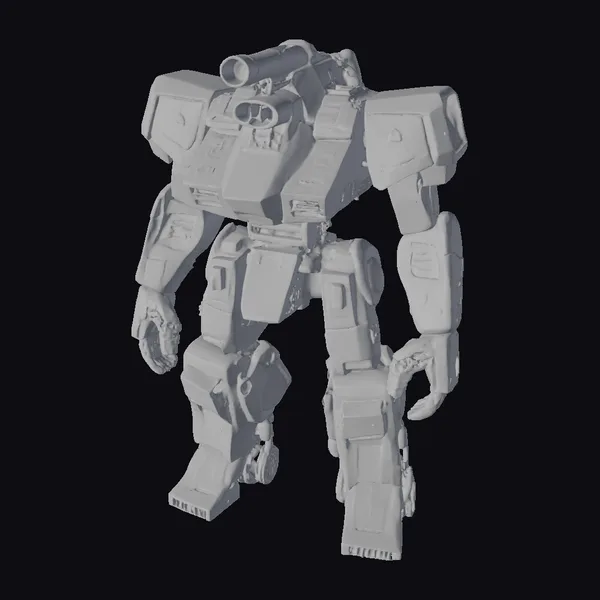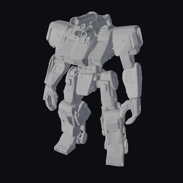 Detailed visual breakdown reveals a robot with a predominantly grey, metallic body, showcasing a complex assembly of mechanical parts. The mech stands in a powerful pose, highlighting its robust legs and arms, each equipped with what appears to be advanced weaponry or tools. The surface texture suggests a blend of smooth and rugged elements, adding to its realistic appearance. This model is ideal for use in games, 3D printing, VR/AR experiences, animation, and design projects, offering a versatile and engaging subject. Its futuristic design and detailed features make it a compelling addition to any sci-fi themed project.
