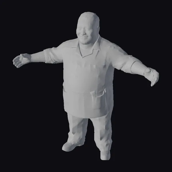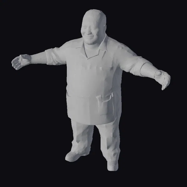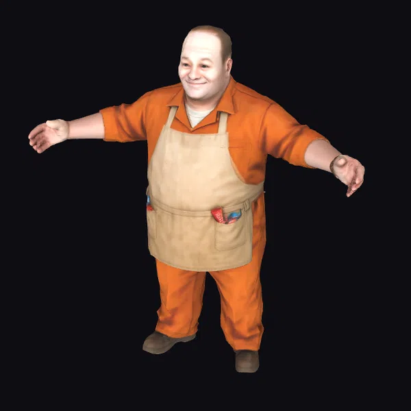 Standing with arms outstretched in a welcoming gesture, this 3D model of a happy artisan showcases intricate details such as the texture of the orange jumpsuit, the tool-laden apron, and the warm, inviting smile. The artisan’s pose and facial expression convey a sense of joy and eagerness, making this model perfect for projects requiring a friendly, approachable character. Suitable for use in animations, games, virtual reality experiences, and 3D printing, this model brings a touch of warmth and personality to any scene.