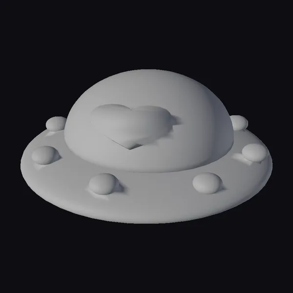 Positioned on a sturdy red base with small protrusions on either side, the dish features a transparent dome that gradates from dark blue at the top to clear towards the bottom. A bright red heart shape frames a pale pink inner heart, creating a delightful visual contrast. The dish’s stylized appearance makes it perfect for adding a touch of personality to digital scenes, games, or 3D environments. Its detailed design and colorful aesthetic make it an excellent choice for projects requiring a playful and eye-catching decorative object.