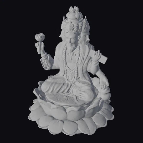 Crafted with meticulous attention to detail, the statue depicts a serene Hindu deity seated on a beautifully rendered lotus flower base, which transitions from pink to blue hues. The deity is distinguished by its multiple faces, each conveying a sense of calm and enlightenment. The figure wears an elaborate crown and ornate robes in shades of pink and gold, complemented by detailed jewelry and symbolic items held in its hands. The model’s realistic style, complete with lifelike textures and a harmonious color palette, makes it an excellent choice for projects requiring a deep dive into mythology and culture, such as animations, games, or educational materials.