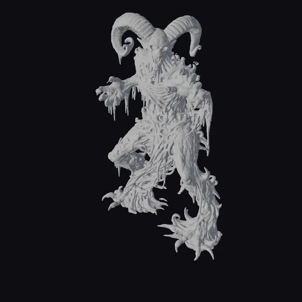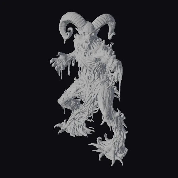 This chilling creature model showcases a zombie-like being with a skull-like face and imposing, curved horns reminiscent of a ram. The body appears to be decaying, with green and yellow hues suggesting a toxic, unnatural decay. The model’s pose conveys a sense of dynamic movement, as if it’s about to lunge forward. Its arms and legs are twisted in unnatural positions, adding to the overall sense of horror. The level of detail, from the dripping, gooey textures to the sharp, jagged edges of the horns, makes this model perfect for use in dark fantasy settings, horror games, or animation projects. Designers and artists can leverage this model for creating immersive environments, characters, or scenes that demand a high level of realism and terror.