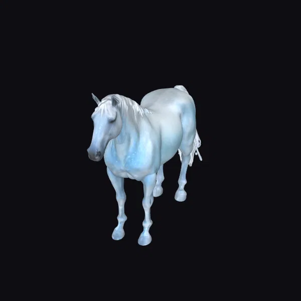Standing tall with a robust build, this ice blue horse boasts a glossy coat that shimmers with a soft, ethereal light. Its mane and tail flow dynamically, as if caught in a gentle breeze. The horse’s pose is both elegant and powerful, showcasing its muscular physique. The icy blue coloration gives it a mystical appearance, perfect for fantasy-themed projects. This model is ideal for use in games, 3D printing, VR/AR experiences, animation, and design projects where a touch of magic is needed. Its unique appearance will undoubtedly capture the imagination of your audience.