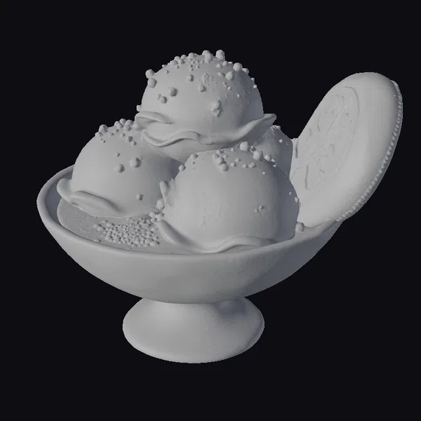 The Model “Ice Cream Dessert Bowl” is also available upon request in many other 3D formats, such as 3MF, BLEND, FBX, OBJ, USDZ and others, making it easy to integrate into your project.